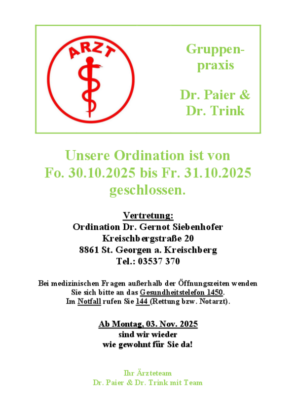 | Donnerstag: | 07.30 - 12.00 und 17.00 - 19.00 Uhr |